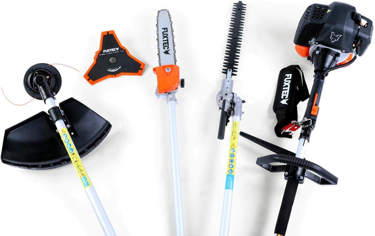 FUXTEC Desbrozadora Multifunción Gasolina FX-MT152E Multiherramienta 5 en 1 - Cortasetos, Motosierra Inclinada, cortabordes, extensión de 1 m - Motor de Gasolina de 2 Tiempos 52cc