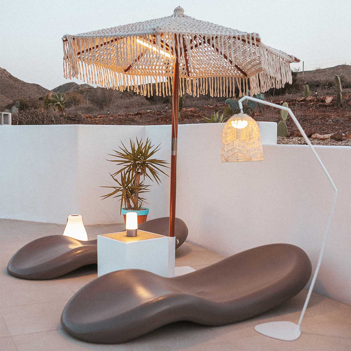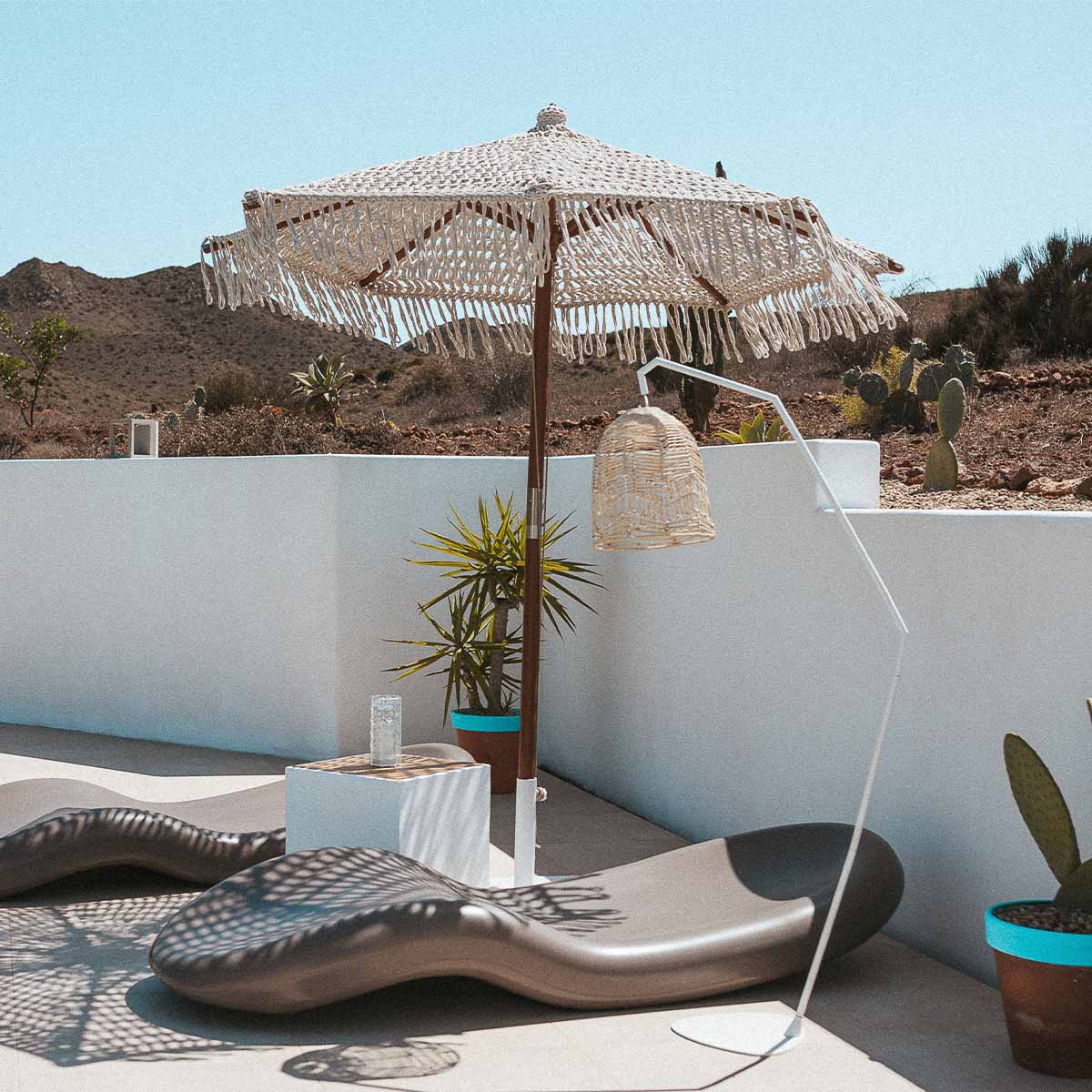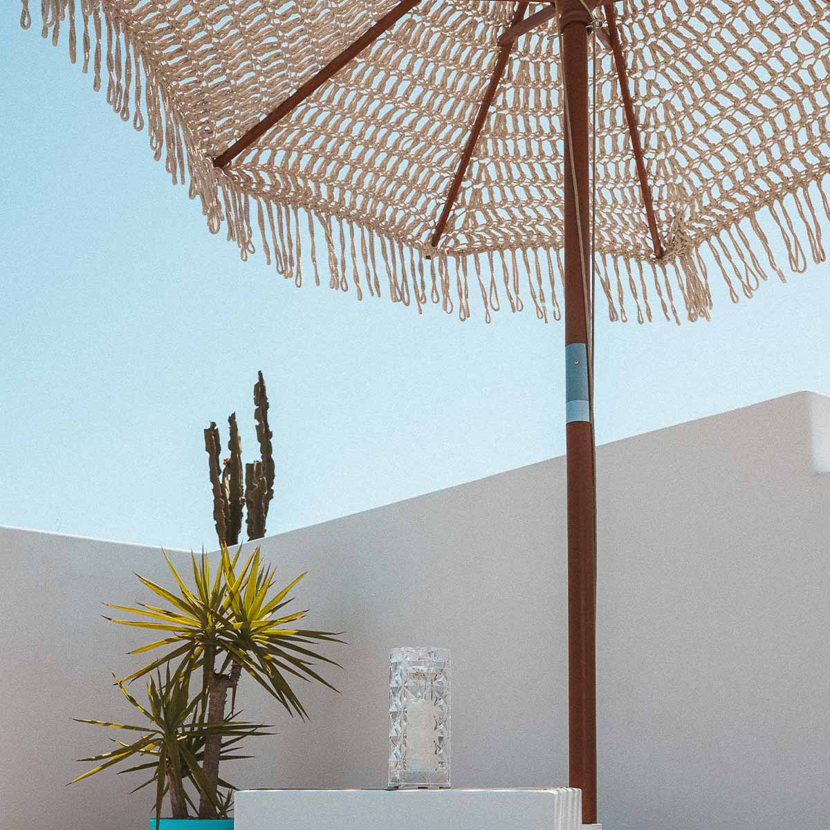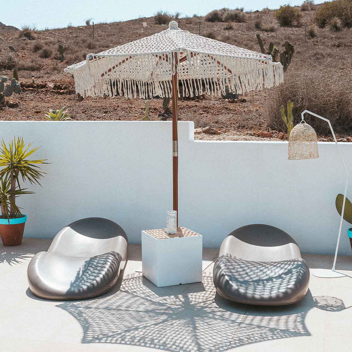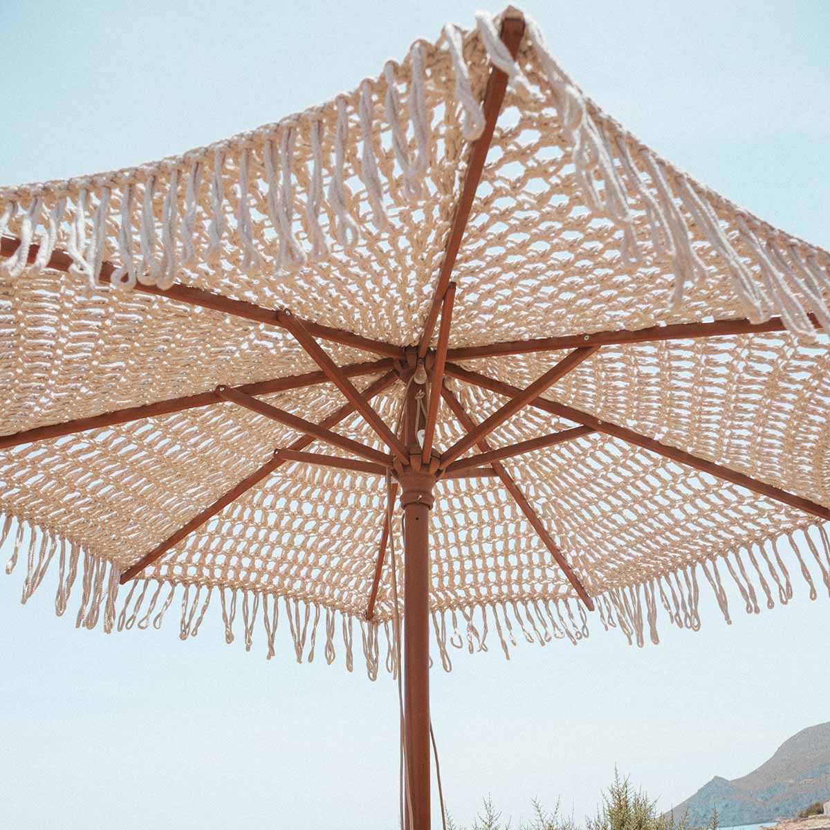 Sombrilla hecha de macramé BINIBECA para exterior ø210x229cm