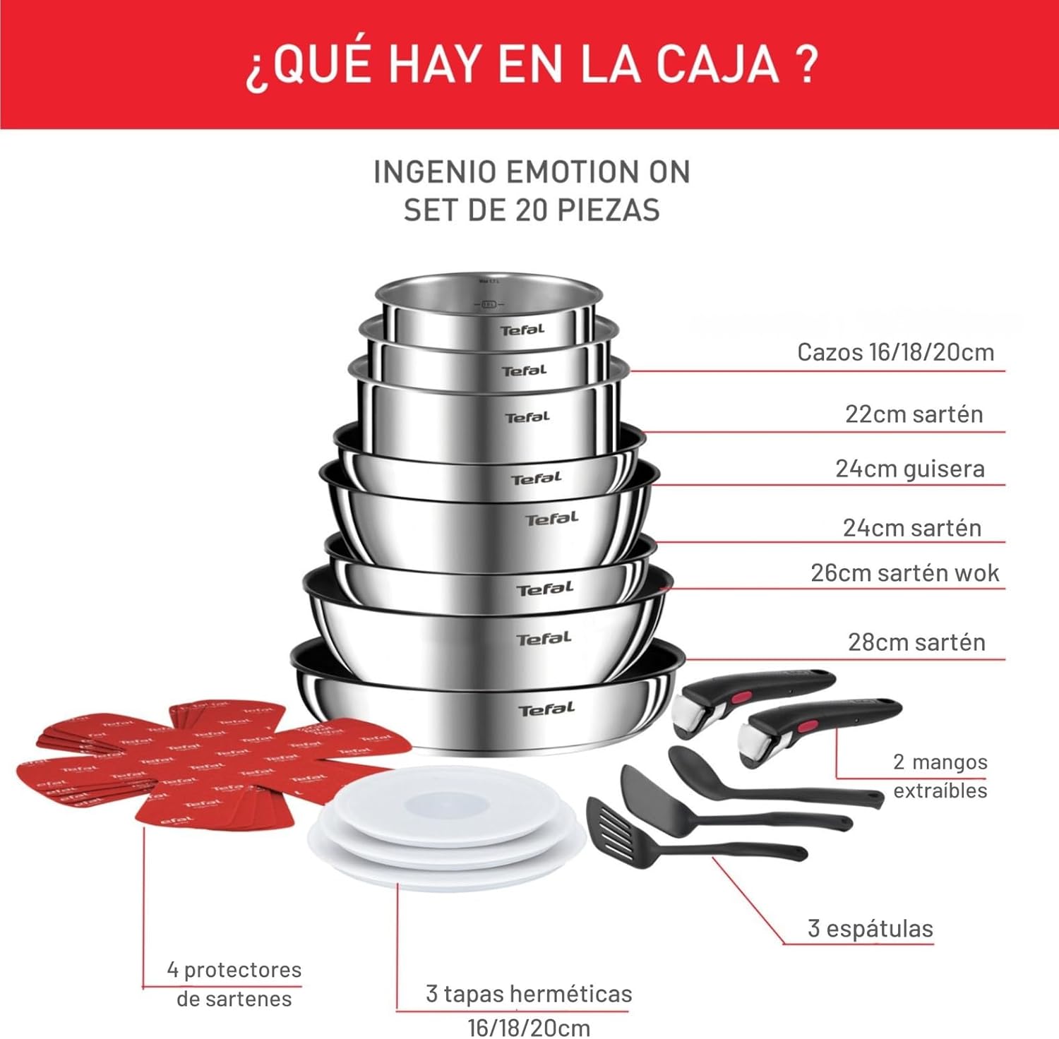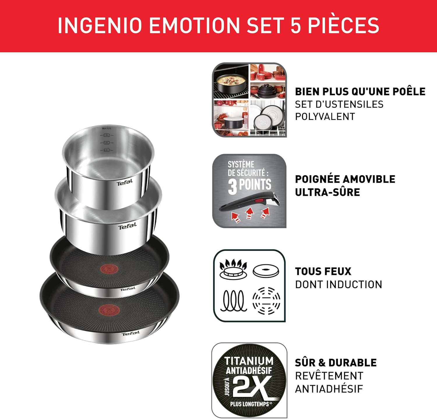 Tefal Ingenio Emotion Set of 3 Frying Pans 22/24/28 cm + 3 Saucepans 16/18/20 cm + Stew Pot 24 cm + Wok 26 cm + 12 Accessories | Induction Safe, Non-Stick, Dishwasher and Oven Safe
