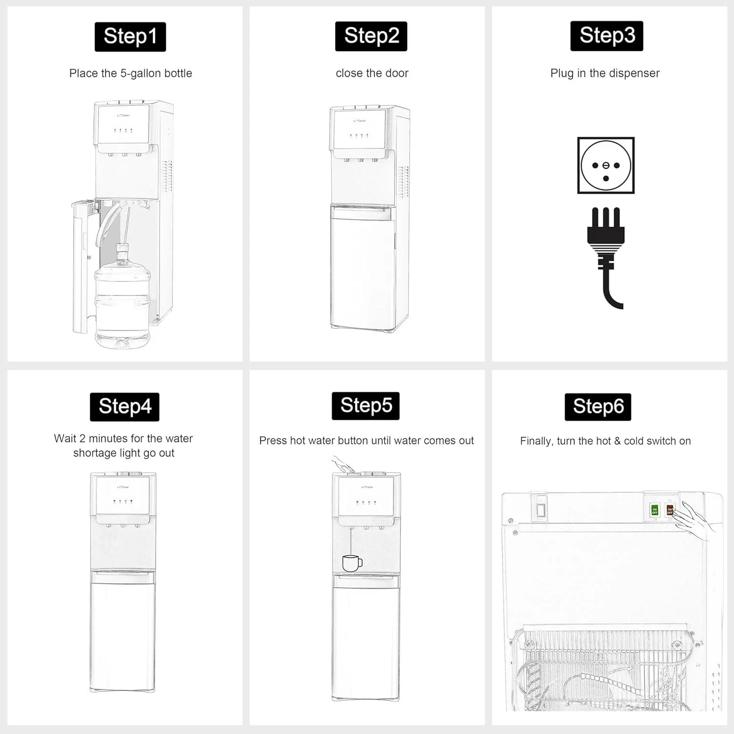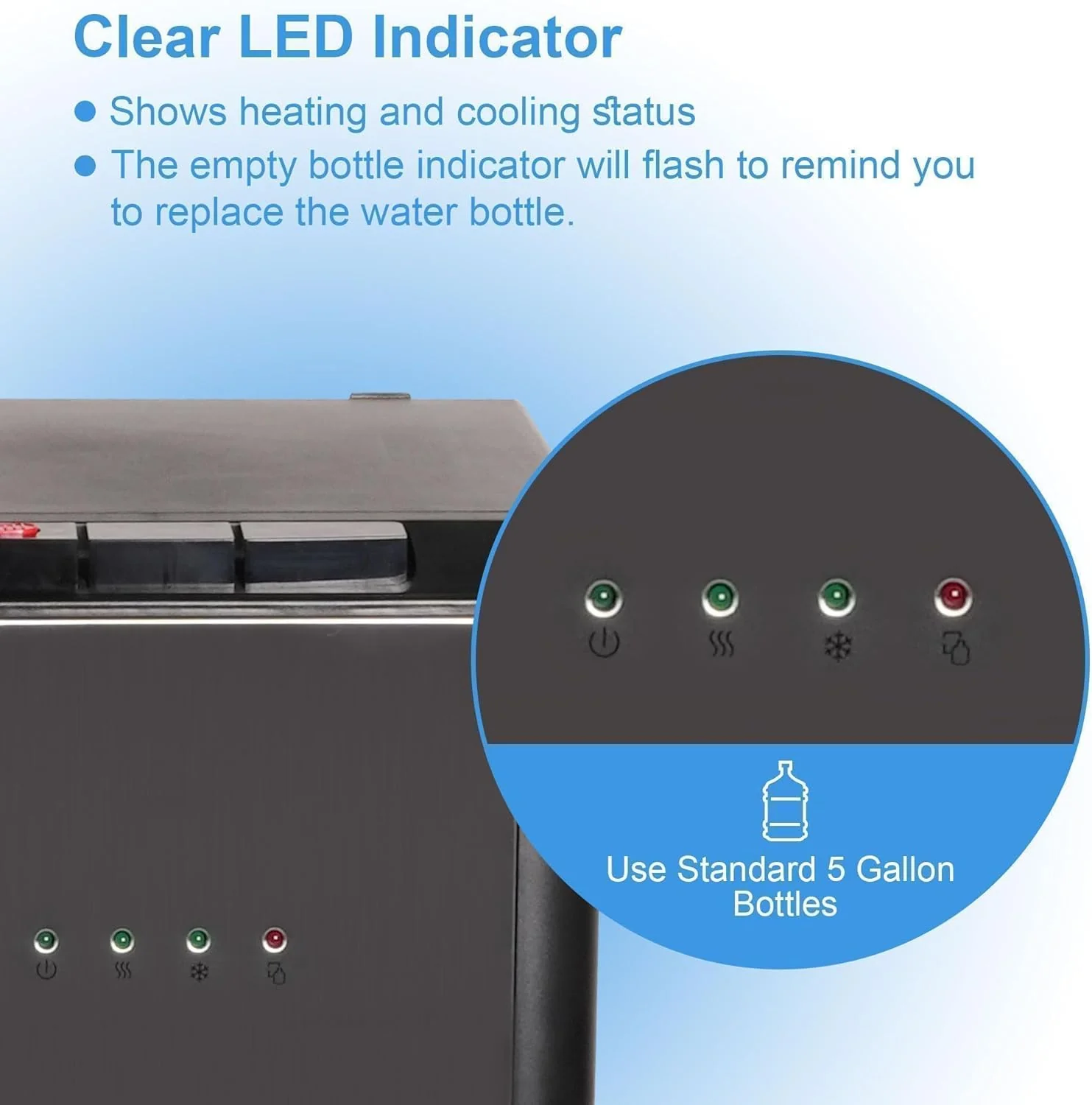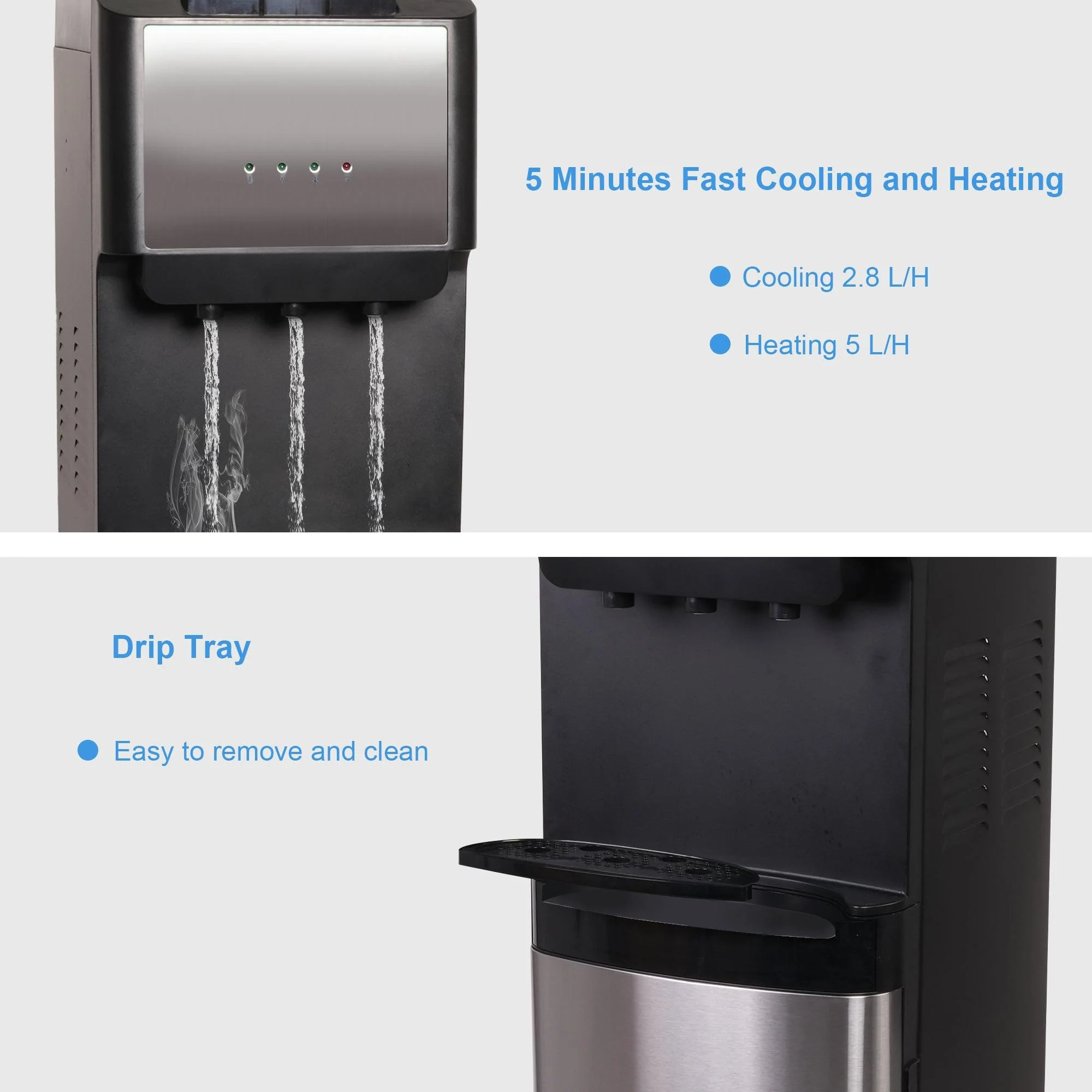 2025 Fuente de agua de 5 galones con carga inferior – 3 temperaturas con seguridad infantil – Negra