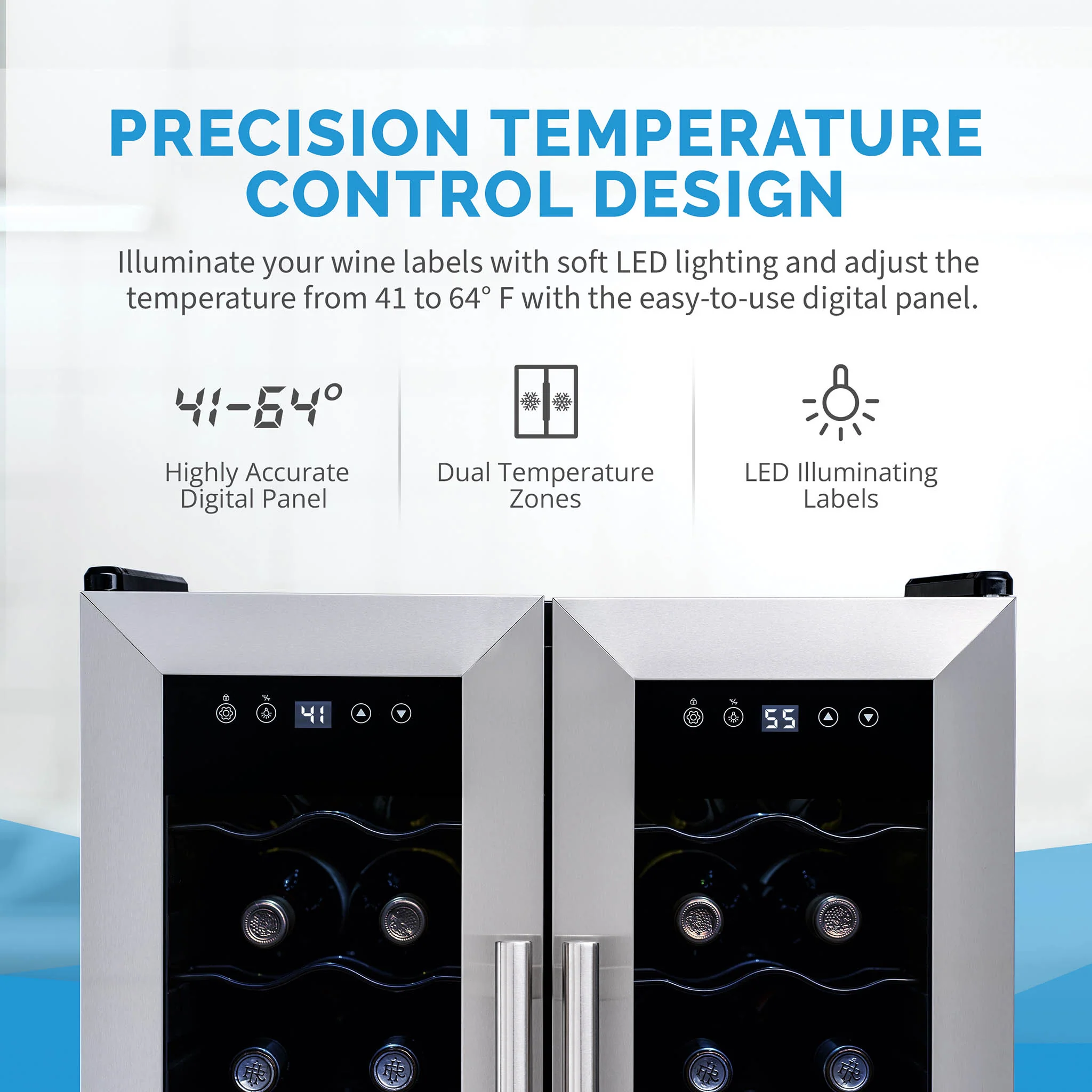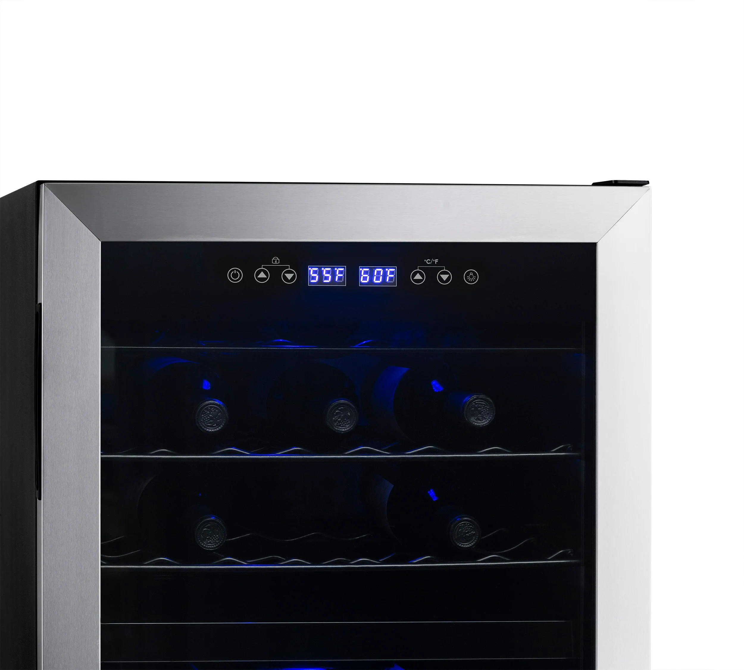 2025 Refrigerador de Vinos Independiente Newair® de Acero Inoxidable – 24 Botellas – 20 con Doble Zona