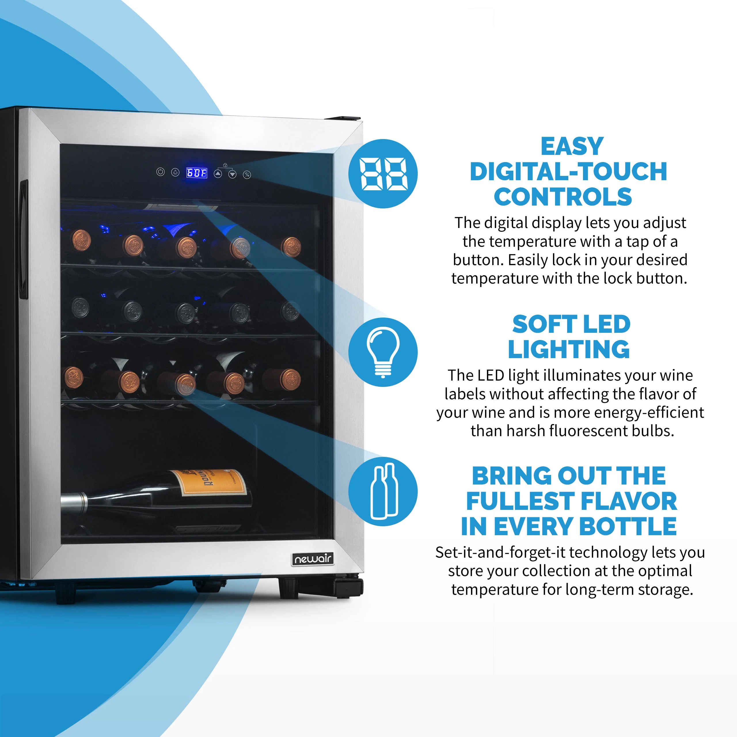 2025 Refrigerador de Vinos Independiente Newair® de Acero Inoxidable – 23 Botellas – 18.9