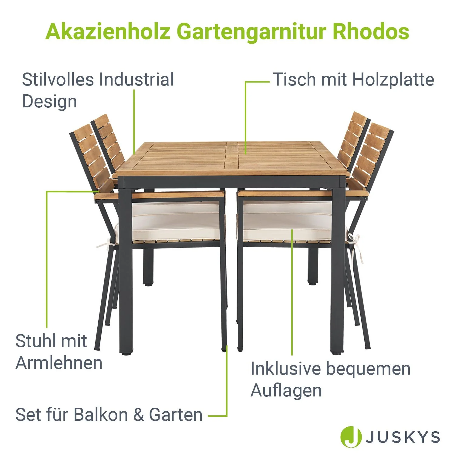2025 Conjunto de jardín de madera de acacia Rhodos – Elegancia natural y confort para 4 personas