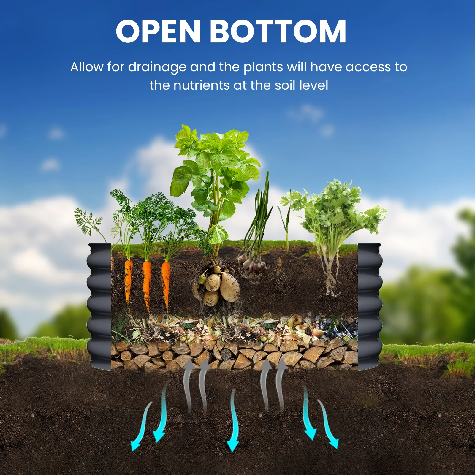 Cajón para verduras de metal Best Choice Products – 240 x 60 x 60 cm. color topo