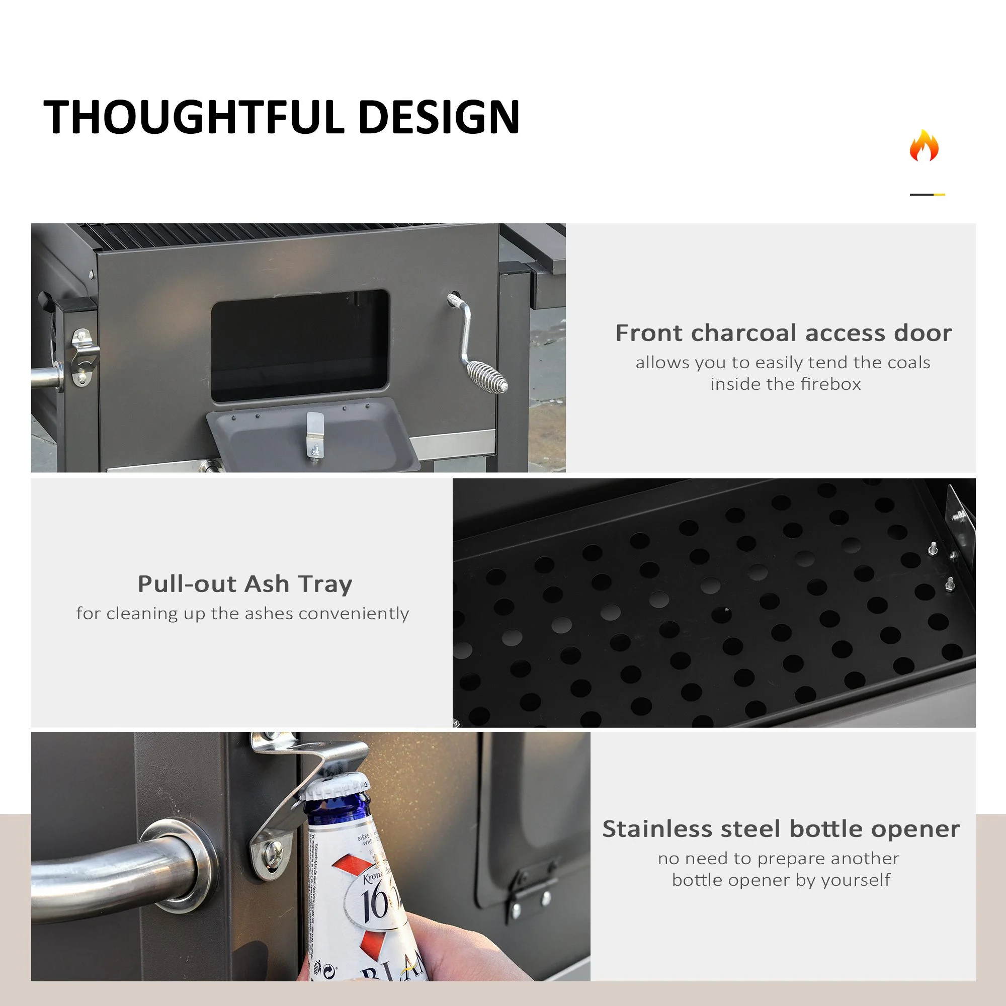 2025 Parrilla de carbón Outsunny. barbacoa portátil para exterior. color gris