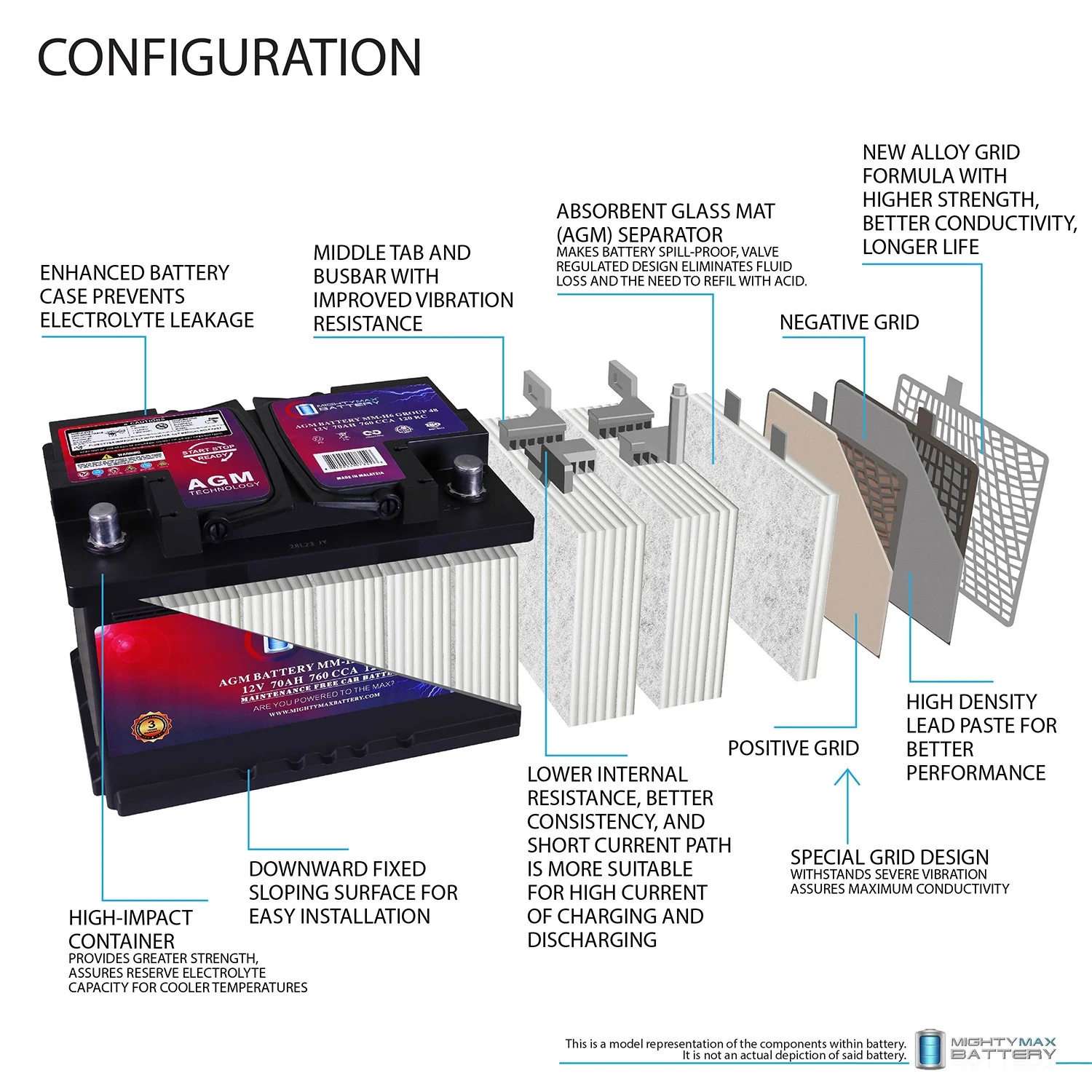 Batería de repuesto MM-H6 Grupo 48 12 V 70 Ah 120 RC 760 CCA – Compatible con Chevrolet Silverado 1500 1/2 Tonne 2007–2013