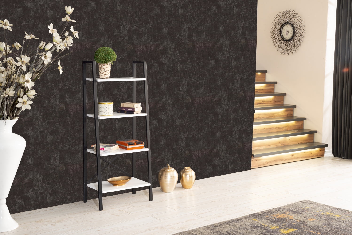 2025 Estantería moderna en forma de escalera GeeHome Leon de 5 niveles con compartimentos de almacenamiento. estructura metálica. estantería para espacios pequeños. salón. oficina o biblioteca. color blanco
