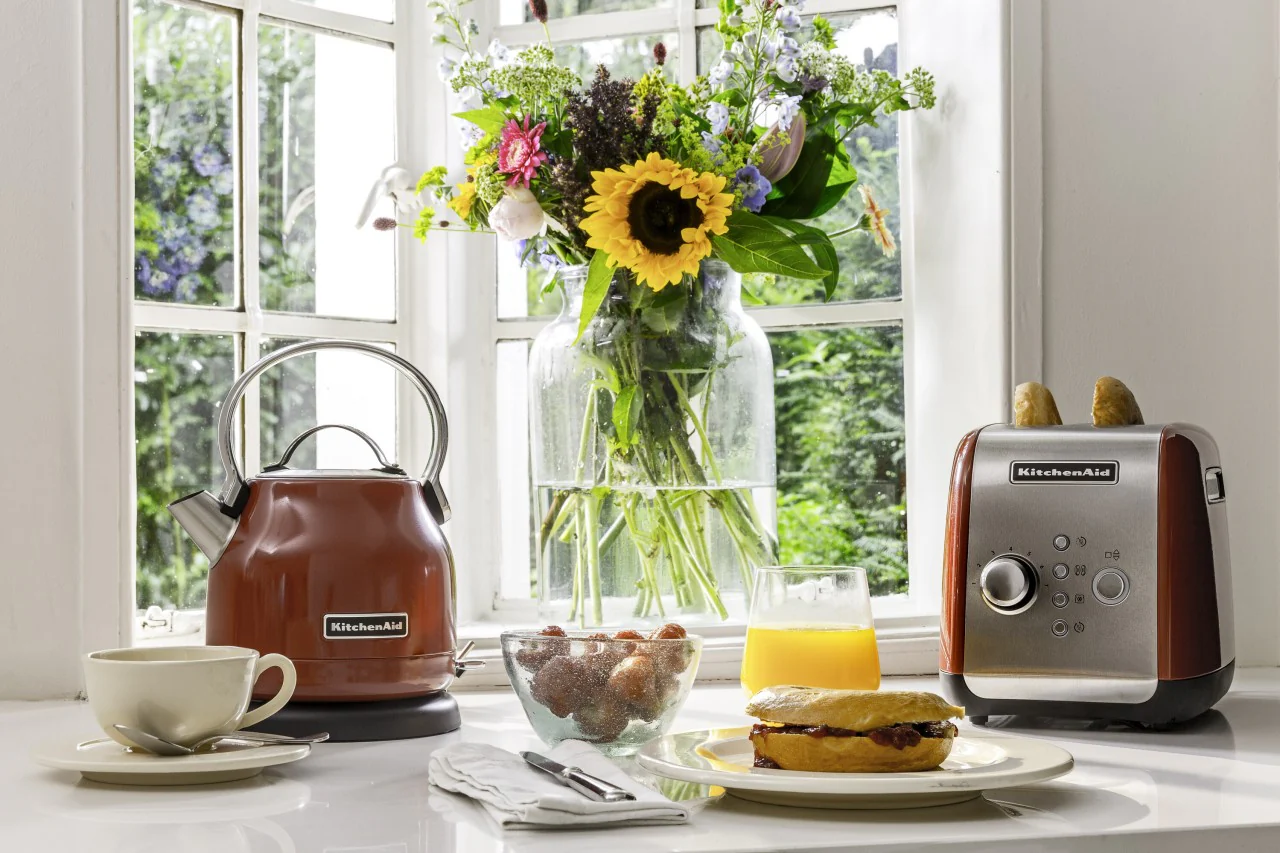 2025 Set de desayuno KitchenAid con hervidor 5KEK1701, tostadora de 2 ranuras 5KMT2109 y calentador de pan