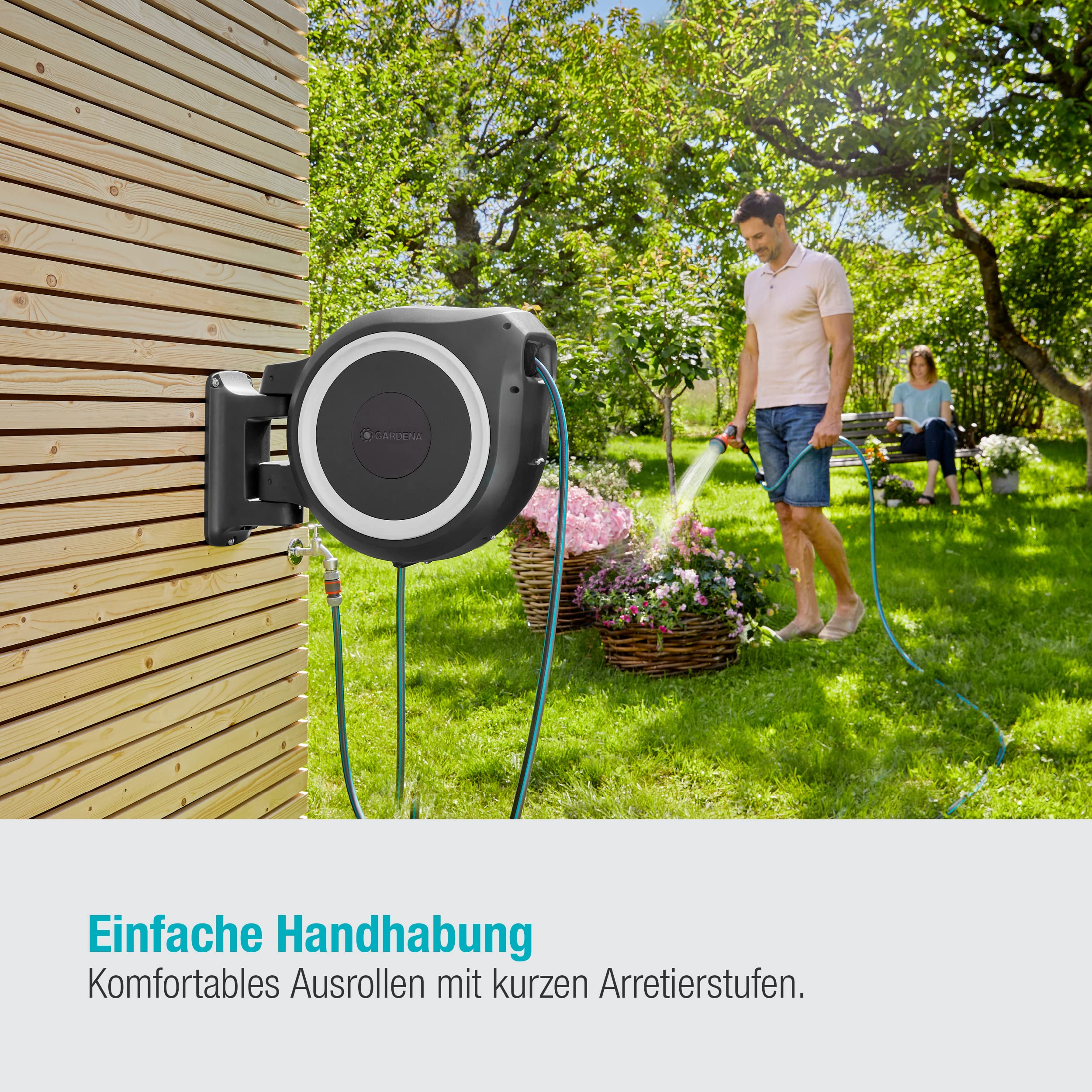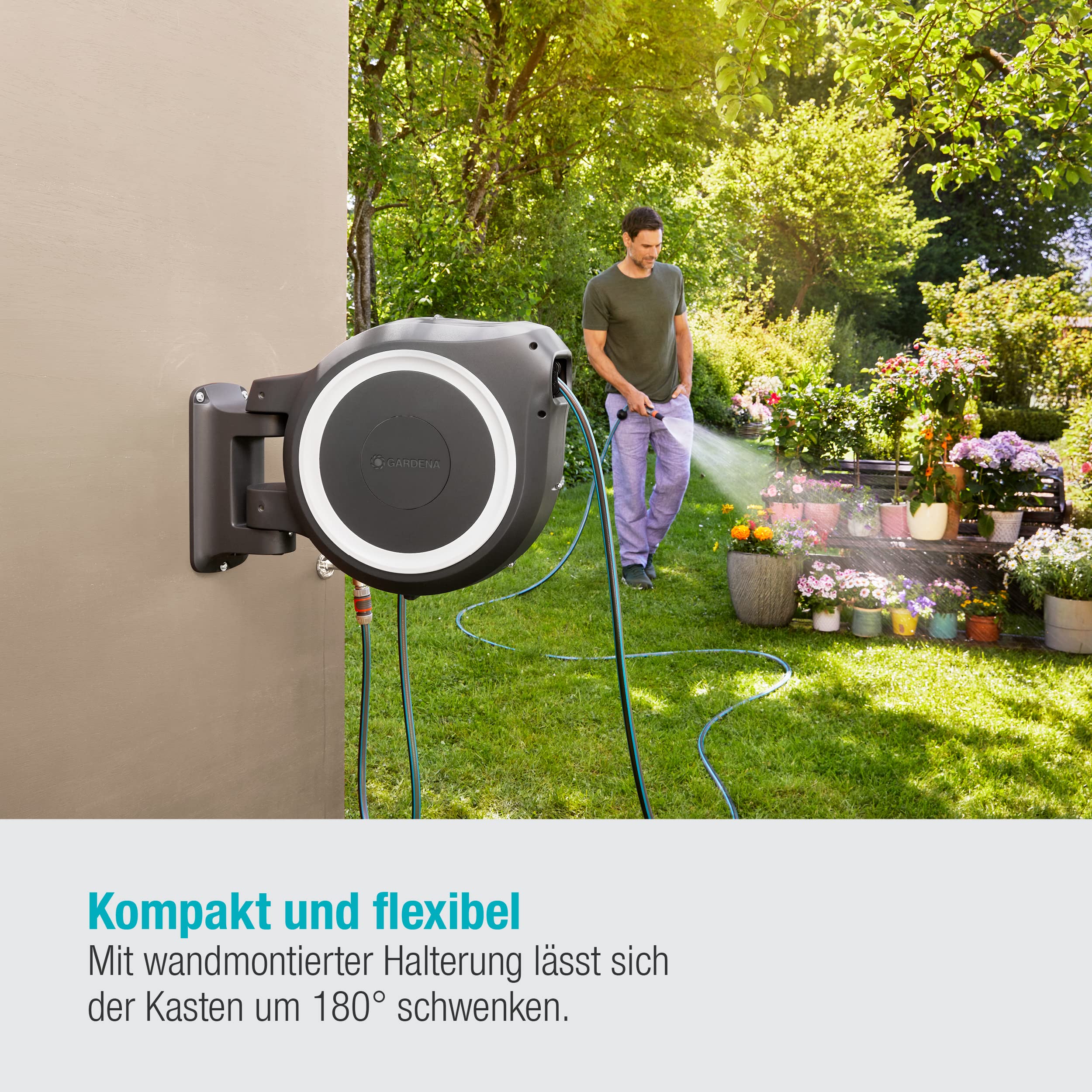 2025 Caja para Manguera de Pared Gardena RollUp XL 35 m Edición Exclusiva: Riego Flexible para Jardines Grandes, Caja Giratoria con Manguera de 35 m, Ducha y Pulverizador de Limpieza (18632-60)